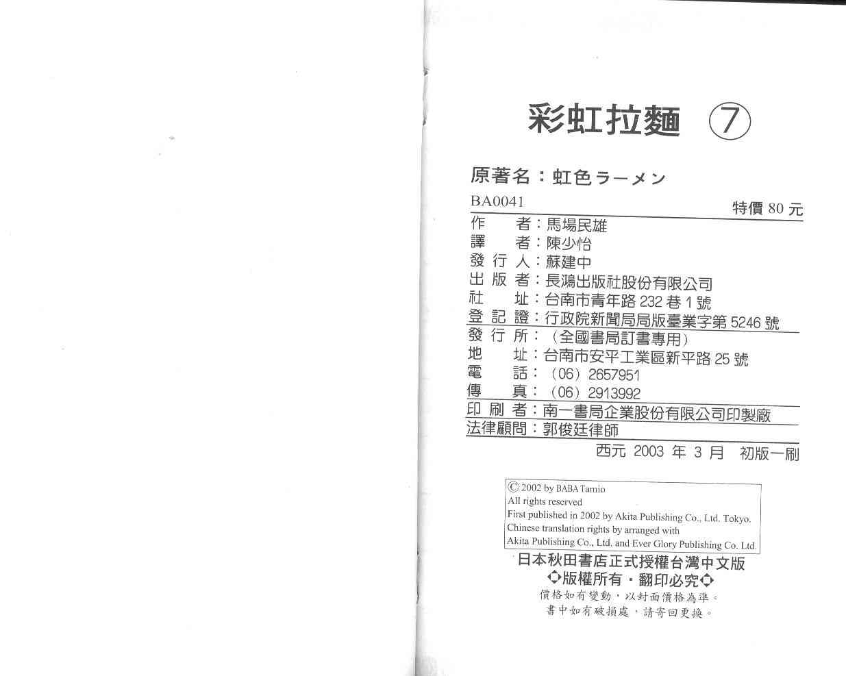 《彩虹拉面》目录