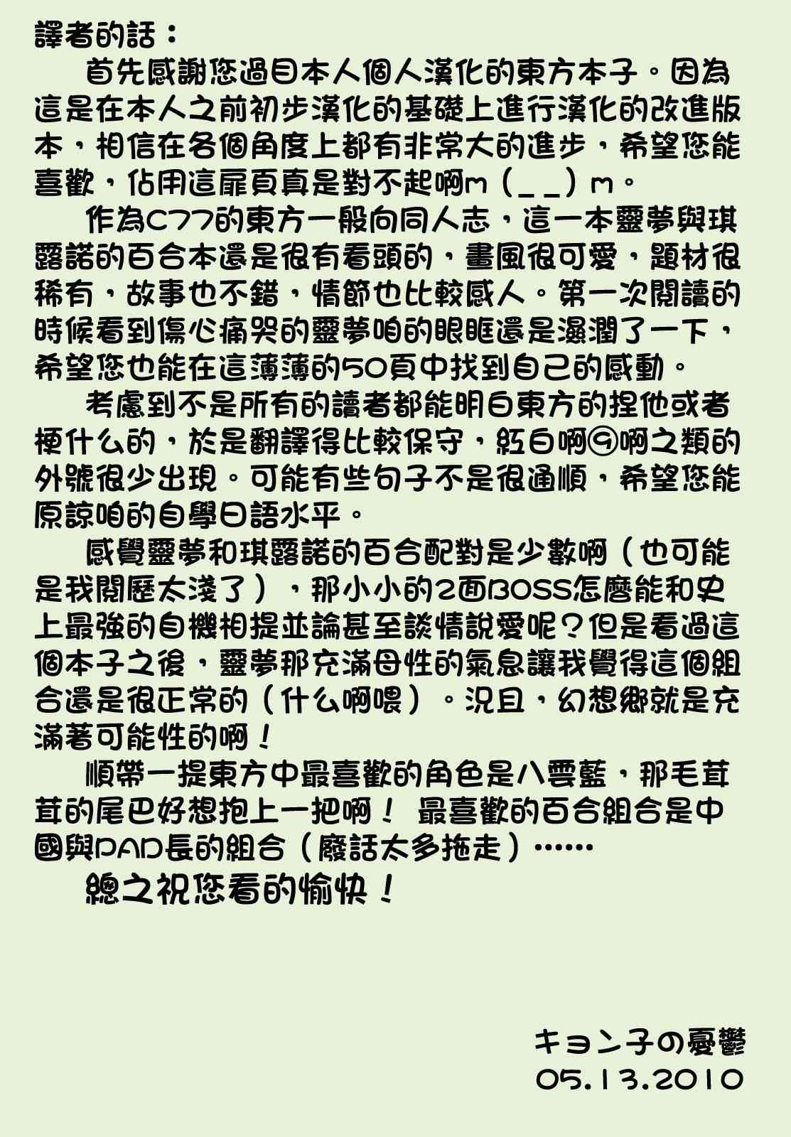 《灵梦和琪露诺的One Two Three》全一话
